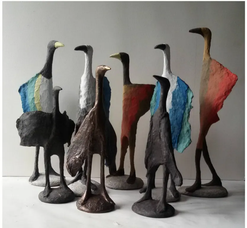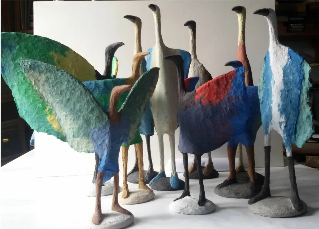colourful birds, colourful sculpture